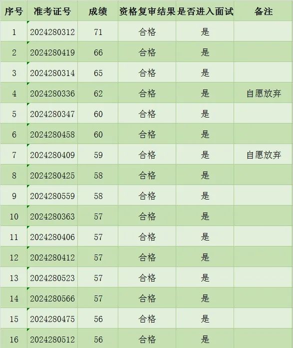 通過勐??h2024-2025年度大學生志愿服務西部計劃地方項目志愿者招募筆試且資格復審合格,擬進入面試人員名單如下: