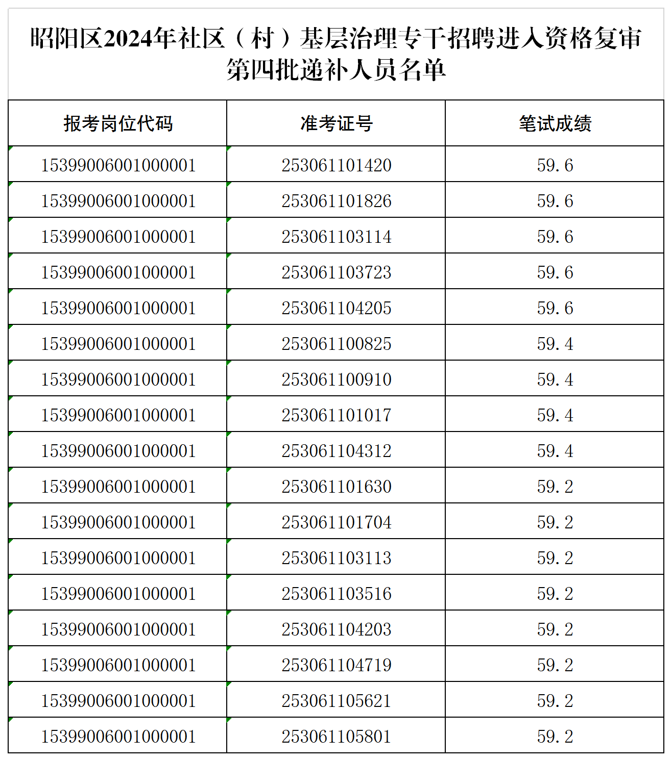 附件:昭陽區(qū)2024年社區(qū)(村)基層治理專干招聘進入資格復(fù)審第四批遞補人員名單