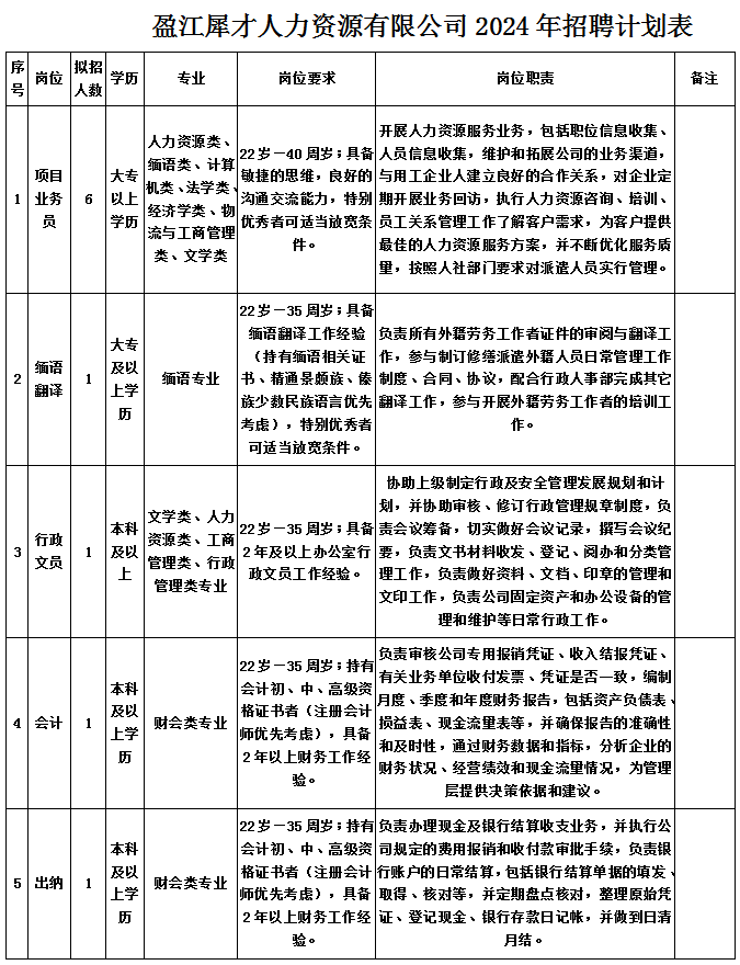 關(guān)于盈江犀才人力資源有限公司公開招聘工作人員的公告
