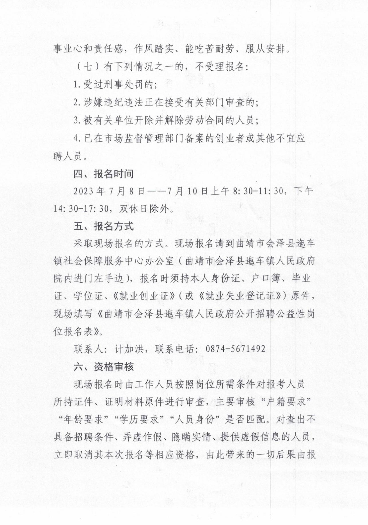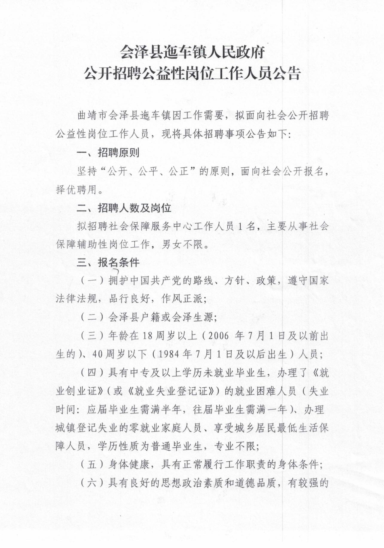 會(huì)澤縣迤車(chē)鎮(zhèn)人民政府公開(kāi)招聘公益性崗位工作人員公告