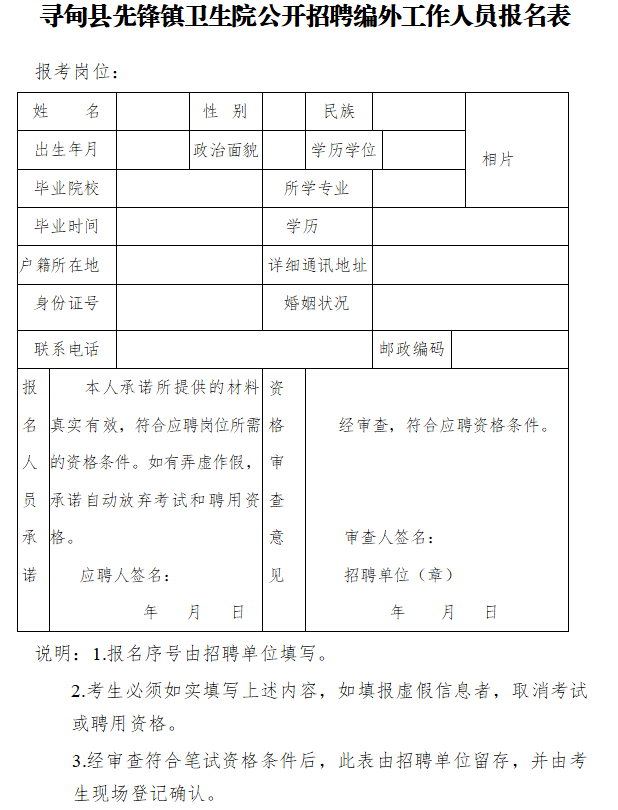 附件:尋甸縣先鋒鎮(zhèn)衛(wèi)生院公開招聘編外工作人員報名表