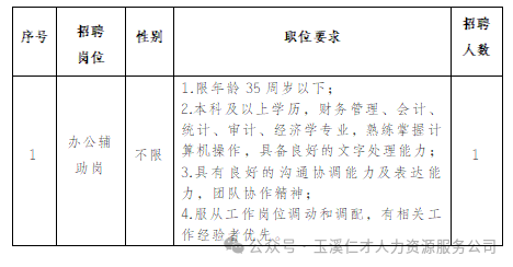 因公司發(fā)展需要,玉溪興誠會計服務(wù)有限公司委托玉溪仁才人力資源服務(wù)有限責(zé)任公司面向社會公開招聘勞務(wù)派遣工作人員1名,現(xiàn)將有關(guān)事宜公告如下: