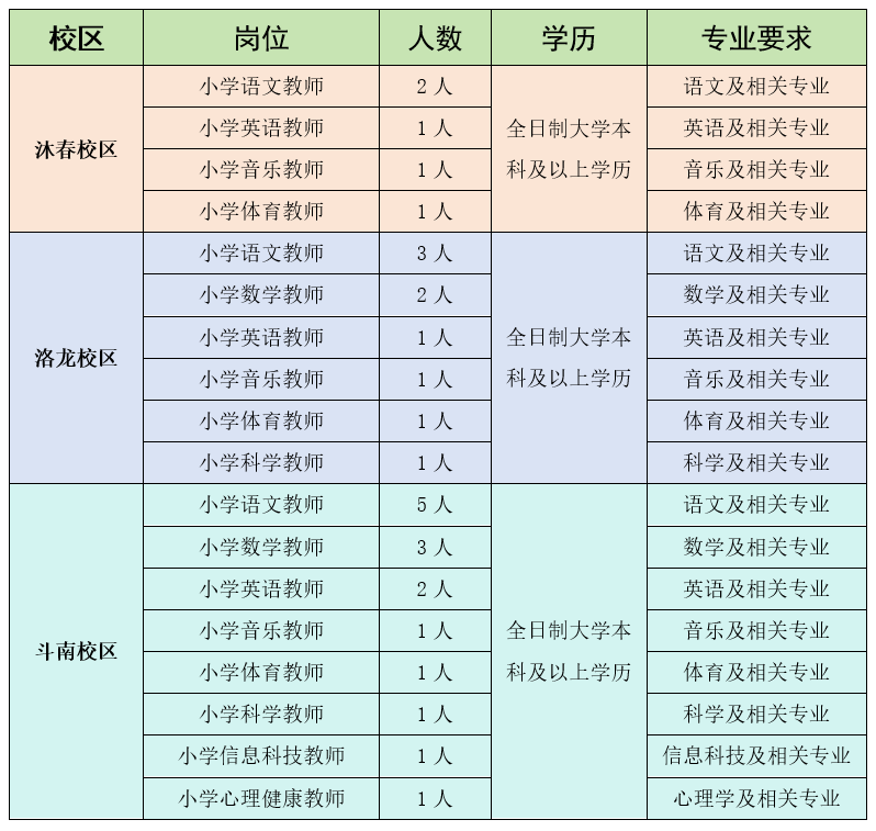 經(jīng)教育主管部門同意,根據(jù)學(xué)校2024年建設(shè)發(fā)展需要,現(xiàn)面向社會公開招聘聘用制教師29人,其中,沐春校區(qū)5人,洛龍校區(qū)9人,斗南校區(qū)15人。