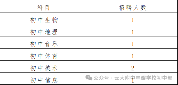 1.初中學段共招7人,詳見下表: