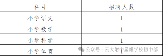 2.小學學段共招4人,詳見下表: