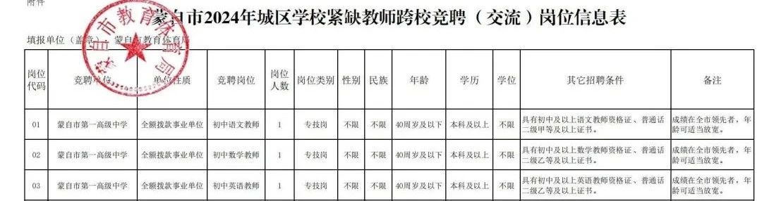 蒙自市第一高級中學(xué)關(guān)于緊缺教師崗位跨校競聘(交流)的公告