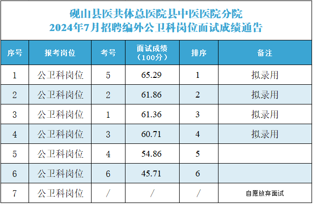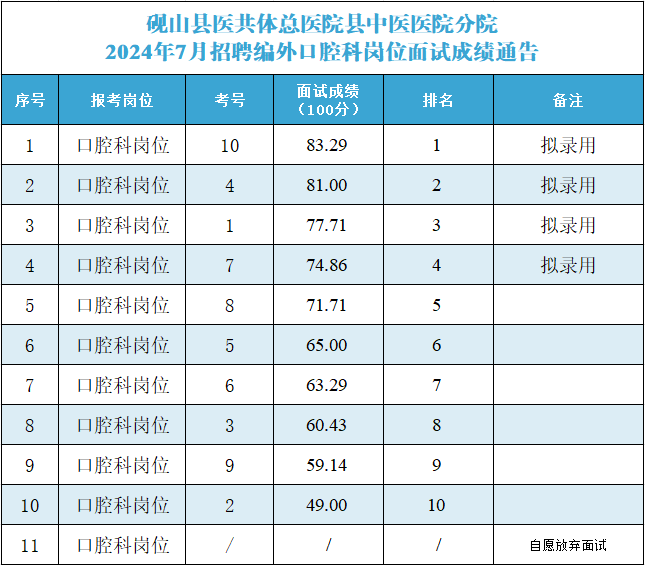 2024年7月招聘編外公衛(wèi)科崗位及口腔科崗位面試成績通告