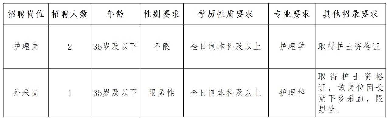 (5)《大理州中心血站編外人員招聘報(bào)名資格審查表》1份。