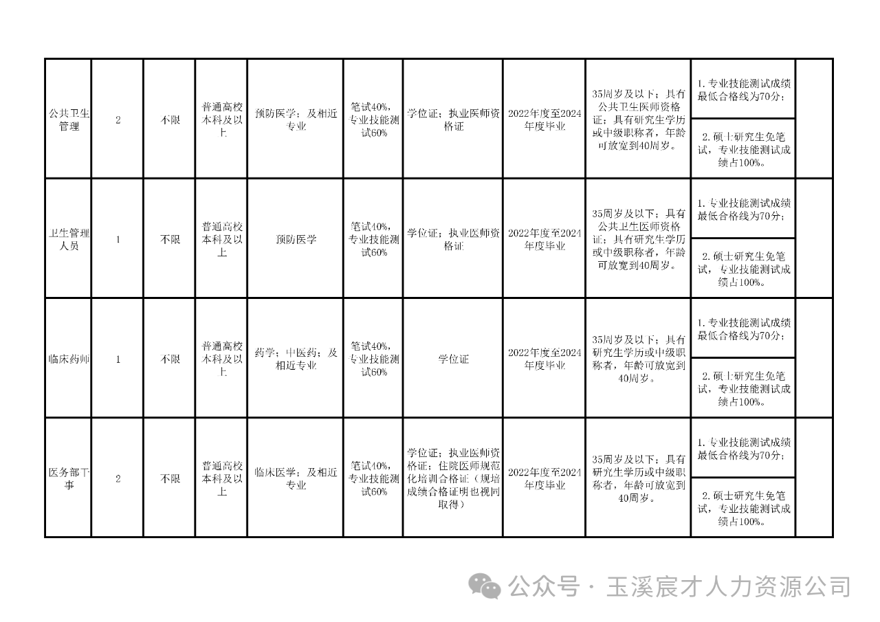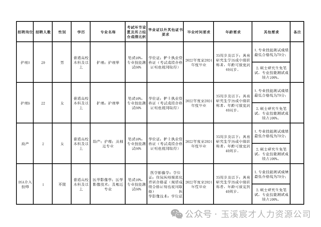 玉溪市中山醫(yī)院2024年公開招聘編制外工作人員崗位表(58名)