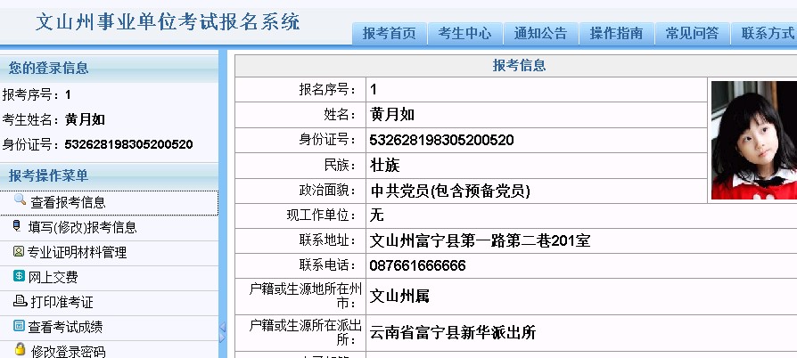 ∷在“基本信息”欄中可以看到“報名序號”、“姓名”、“身份證號”、和“出生日期”項目呈灰色字體顯示,說明這四項不能再修改。