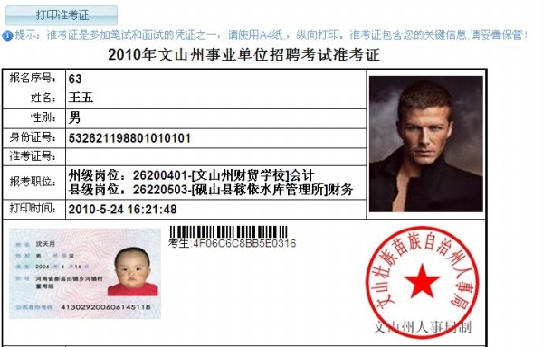 ∷準考證請使用A4紙縱向打印,準考證必須在報名系統(tǒng)中直接打印,不能下載網(wǎng)頁到本地下載。打印的準考證中必須有個人頭像、條形碼、身份證照片及文山州人社局公章。