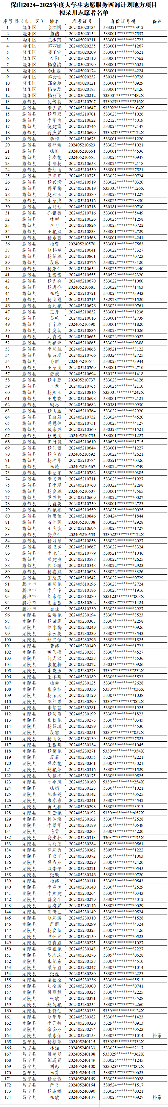 附件:保山2024-2025年度大學生志愿服務西部計劃地方項目擬錄用志愿者名單