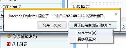 請點擊瀏覽器上的黃色提示條,在彈出的窗口中,選擇進入頁面如下: