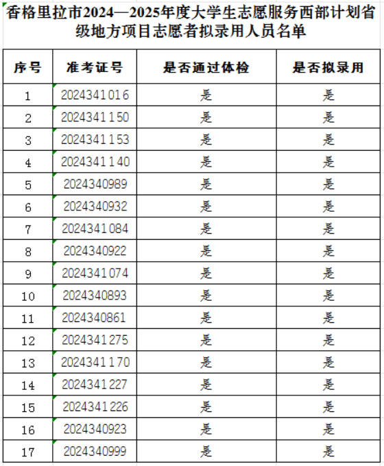 香格里拉市2024-2025年度大學(xué)生志愿服務(wù)西部計(jì)劃省級(jí)地方項(xiàng)目志愿者擬錄用人員公示