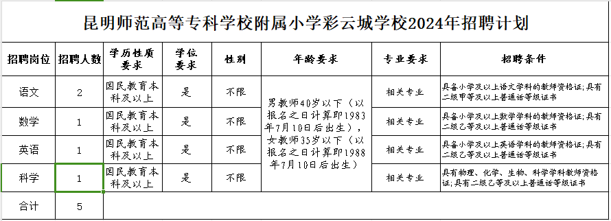 在官渡區(qū)教育體育局的領(lǐng)導(dǎo)下,為保障2024教師招聘工作的順利進行,經(jīng)昆明師專附小官渡學(xué)校、昆明師專附小彩云城學(xué)校兩校協(xié)商,按照官渡區(qū)聘用制教師招聘工作指導(dǎo)意見及相關(guān)人事規(guī)定,結(jié)合學(xué)校工作實際,合并開展2024年度兩校新教師招聘工作。