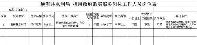 附件:《通海縣水利局招用政府購(gòu)買服務(wù)崗位工作人員崗位表》