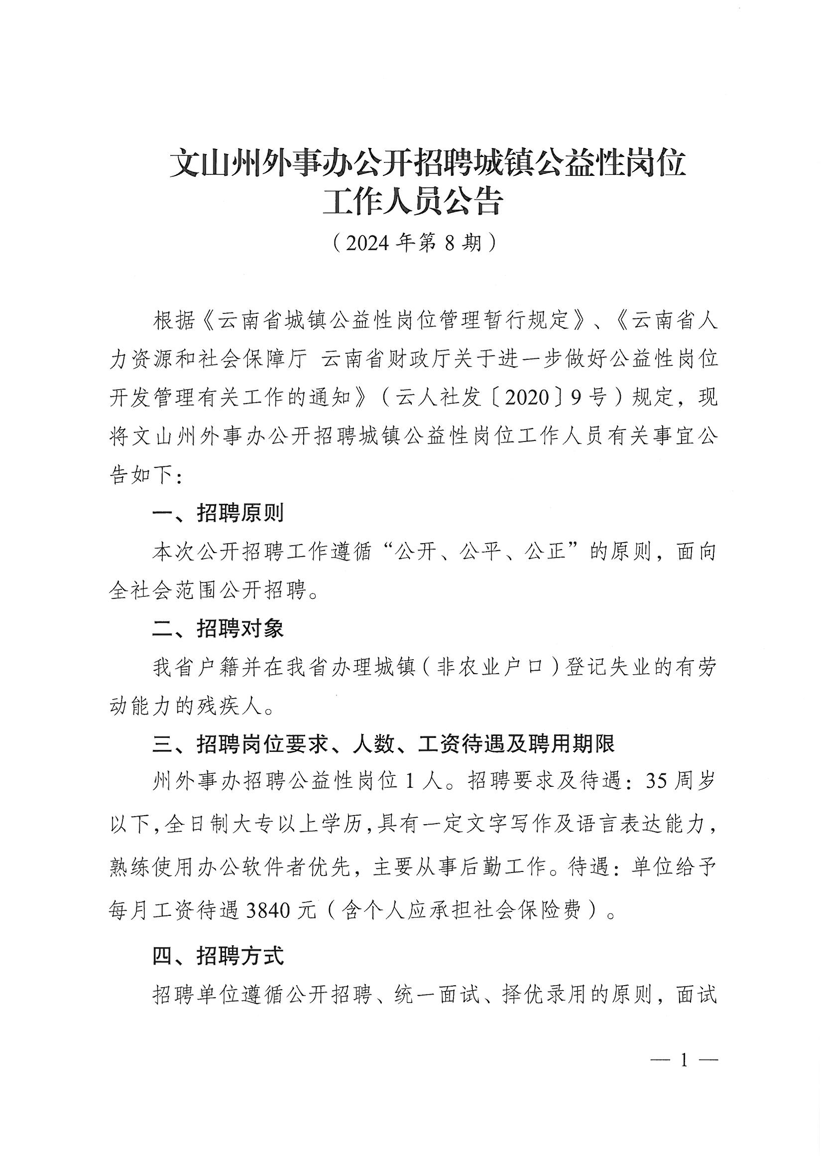 文山州外事辦公開(kāi)招聘城鎮(zhèn)公益性崗位工作人員公告
