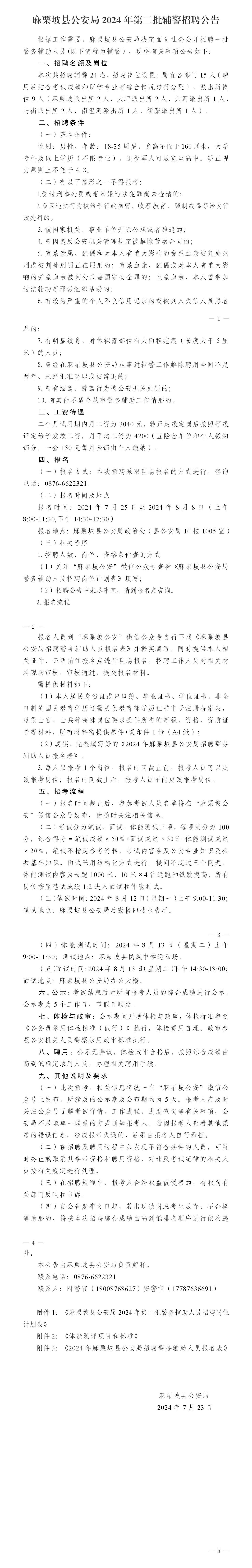 麻栗坡縣公安局2024年第二批輔警招聘公告