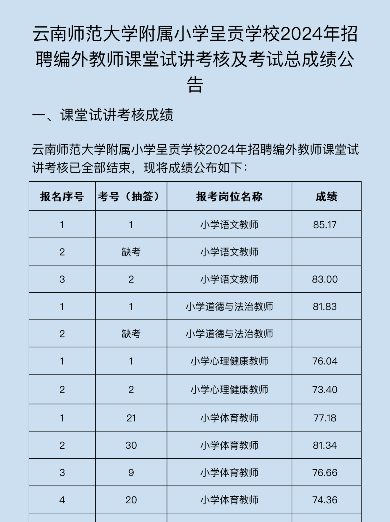 2024年招聘編外教師課堂試講考核及考試總成績(jī)公告