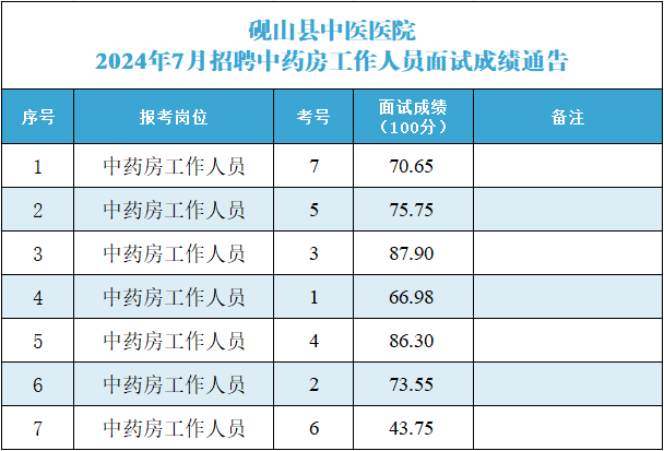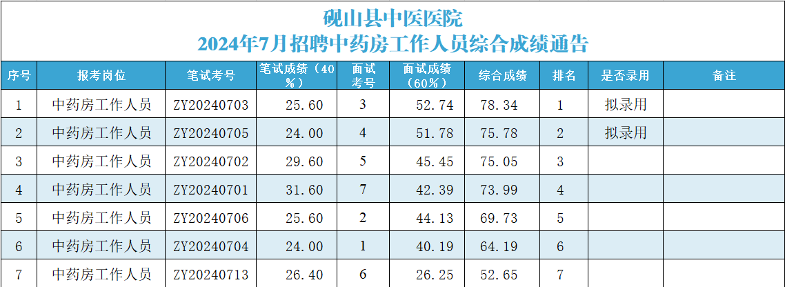 硯山縣中醫(yī)醫(yī)院2024年7月招聘中藥房工作人員面試及綜合成績通告
