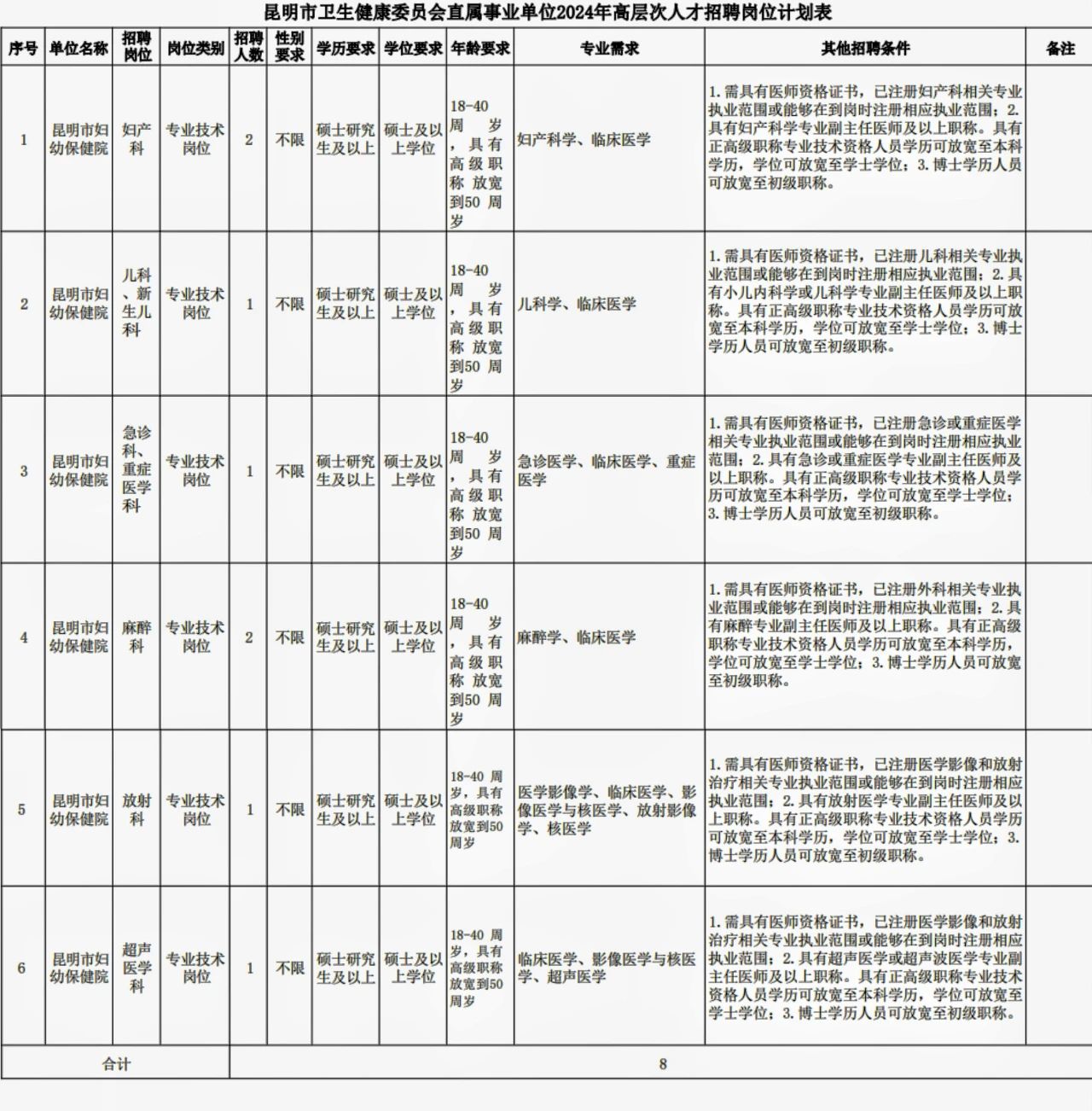 昆明市婦幼保健院2024年面向社會公開招聘高層次人才的公告