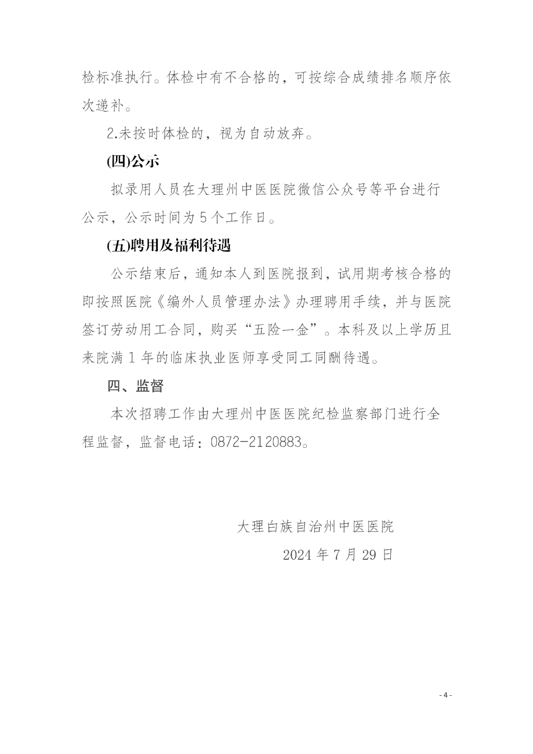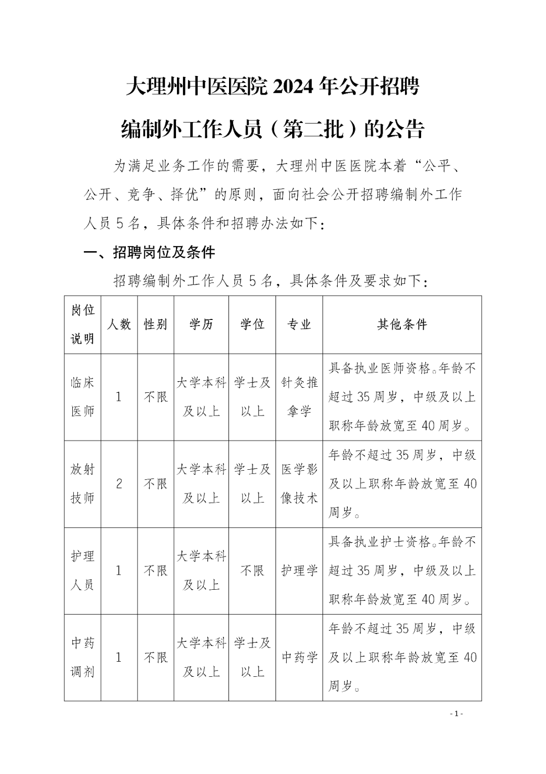 2024年大理州中醫(yī)醫(yī)院編外工作人員招聘公告(第二批)