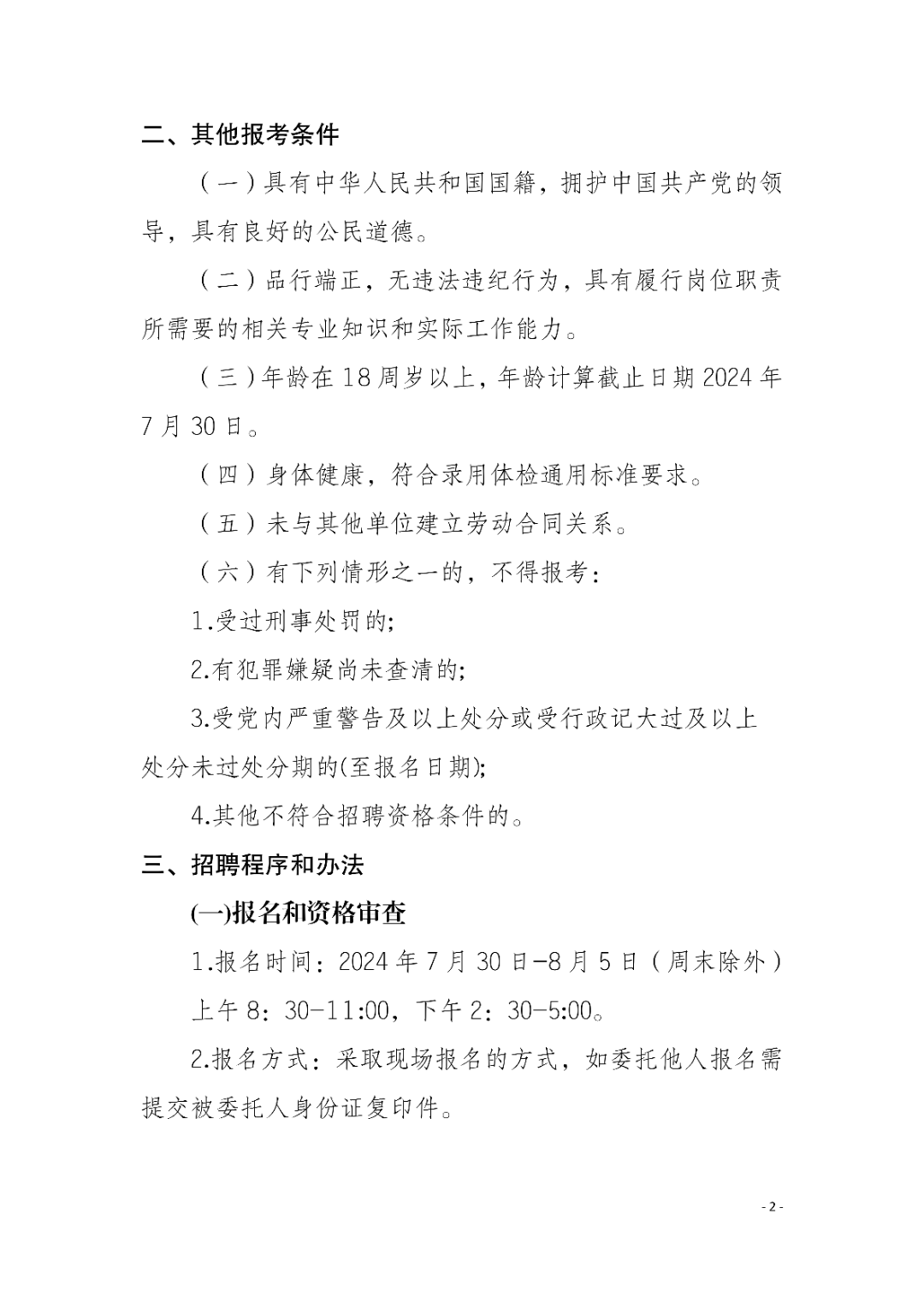三項目招聘: