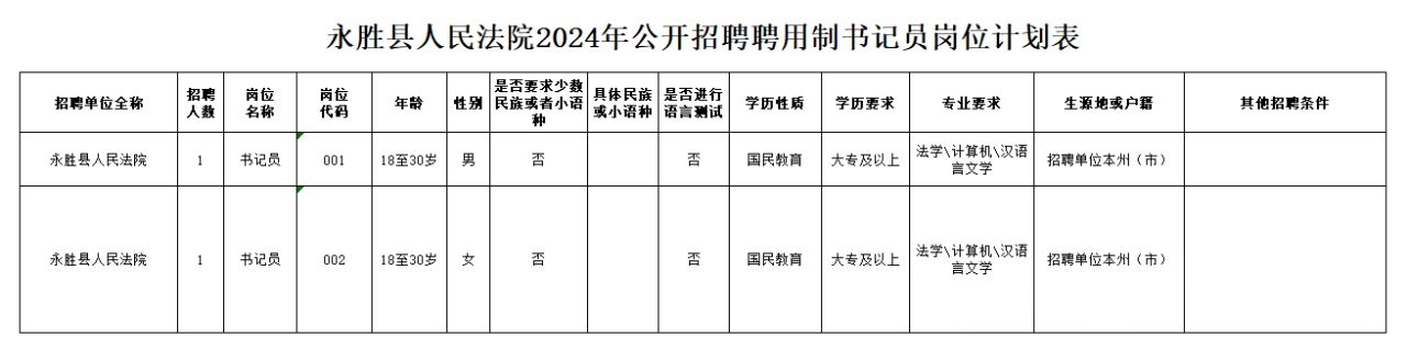 《永勝縣人民法院2024年公開招聘聘用制書記員計(jì)劃表》
