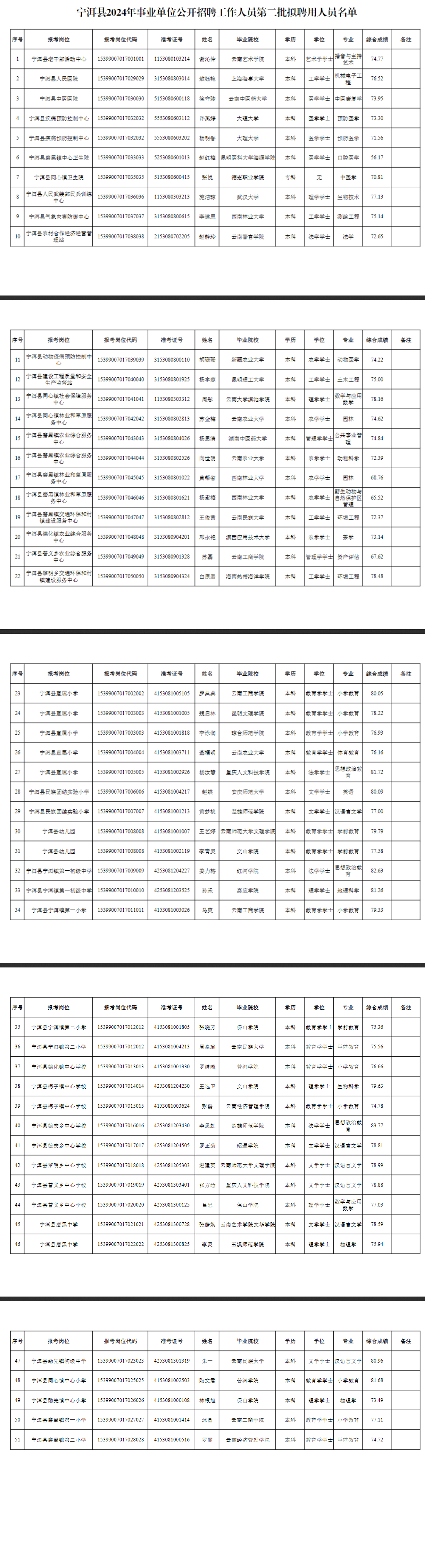根據(jù)《普洱市2024年事業(yè)單位公開(kāi)招聘工作人員公告》有關(guān)規(guī)定,寧洱縣2024年事業(yè)單位公開(kāi)招聘工作,經(jīng)網(wǎng)絡(luò)報(bào)名、筆試、資格復(fù)審、面試、體檢、考察等程序,現(xiàn)將寧洱縣2024年事業(yè)單位公開(kāi)招聘工作人員第二批擬聘用人員名單公告如下,公示期為7個(gè)工作日(2024年8月1日—8月9日),若信息有誤或?qū)M聘用人員有異議的,請(qǐng)與寧洱縣人力資源和社會(huì)保障局聯(lián)系。為保護(hù)報(bào)考人權(quán)益,反映問(wèn)題時(shí)須實(shí)名反映(聯(lián)系電話:0879—3209172)