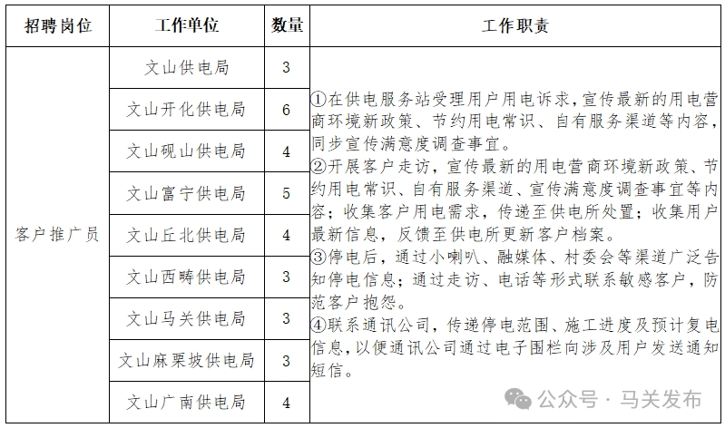 文山供電局項目制用工招聘公告