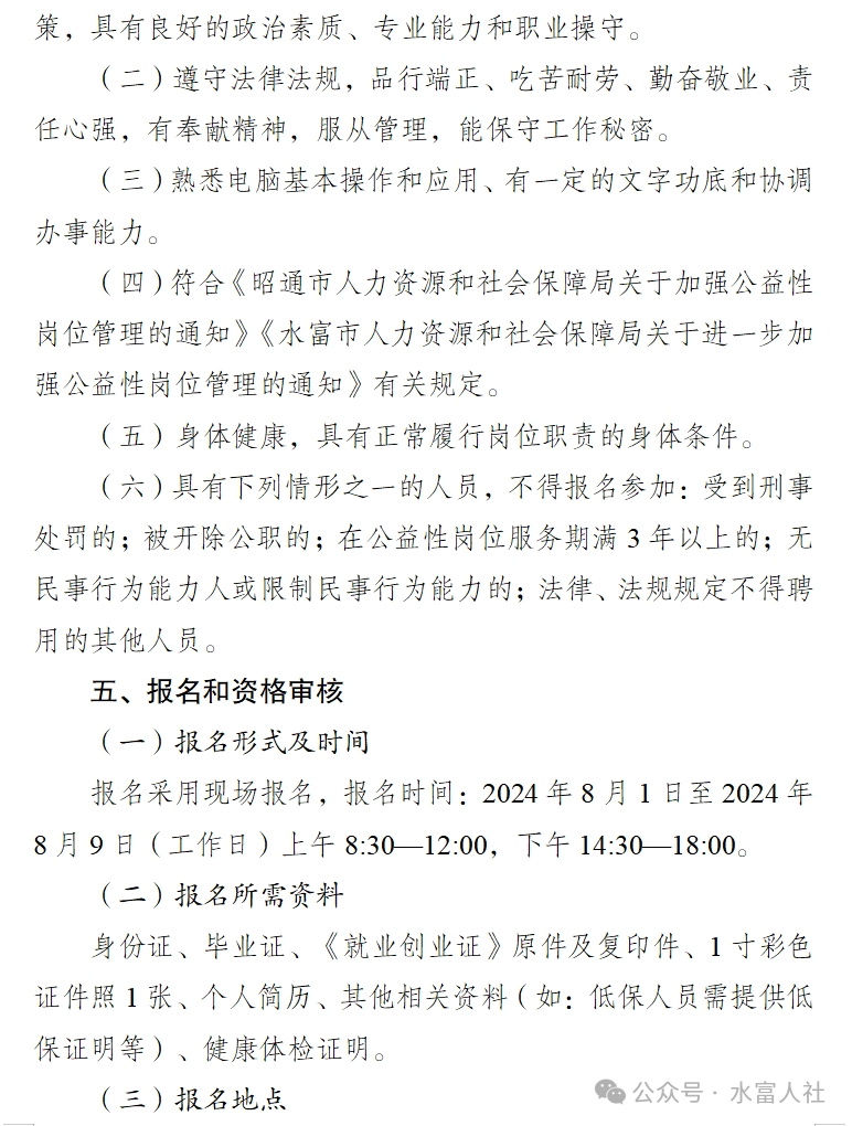 水富市自然資源局關(guān)于招聘公益性崗位人員的公告