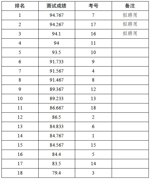 關(guān)于面向社會公開招聘公益性崗位人員面試成績的公示