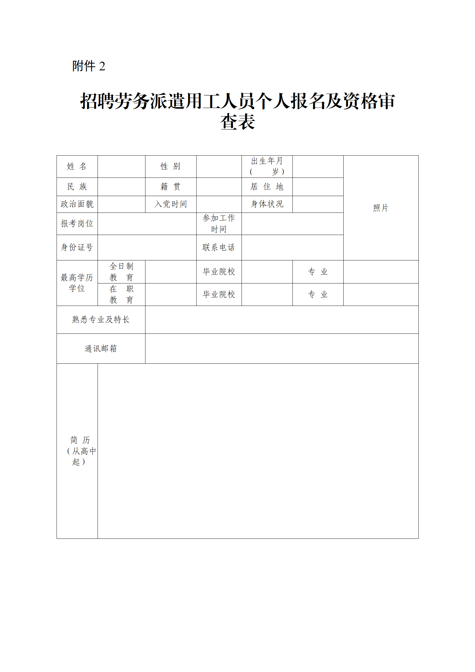 2、招聘勞務(wù)派遣用工人員個(gè)人報(bào)名及資格審查表