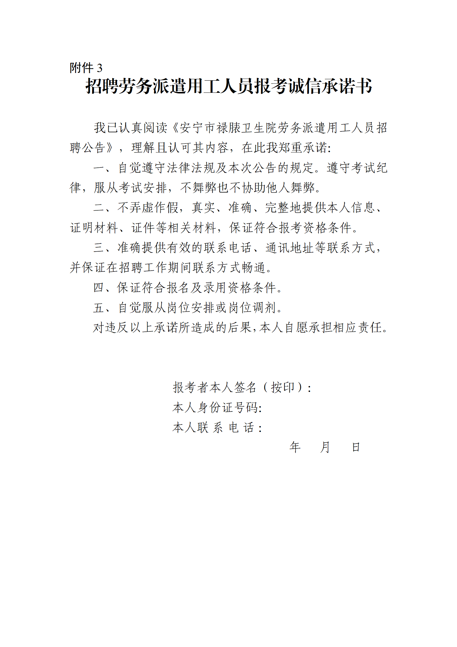 3、招聘勞務(wù)派遣用工人員報(bào)考誠信承諾書