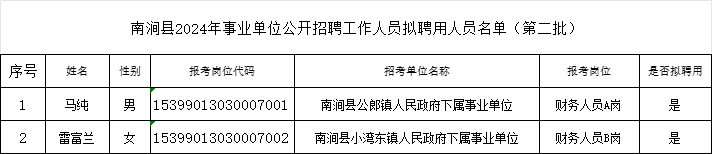 南澗彝族自治縣2024年事業(yè)單位公開招聘工作人員擬聘用人員公示(第二批)
