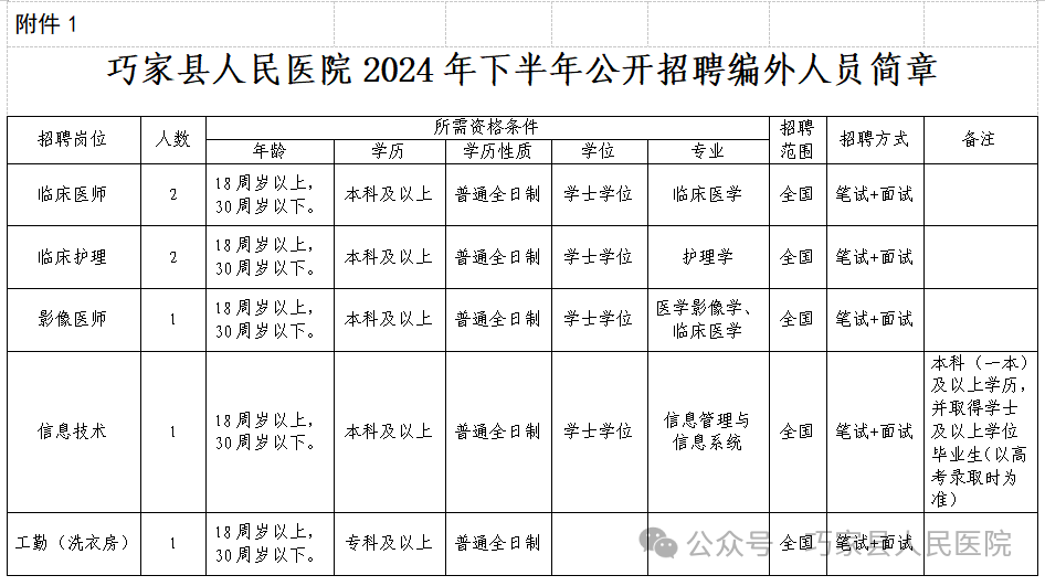 1、巧家縣人民醫(yī)院2024年下半年公開(kāi)招聘編外人員簡(jiǎn)章