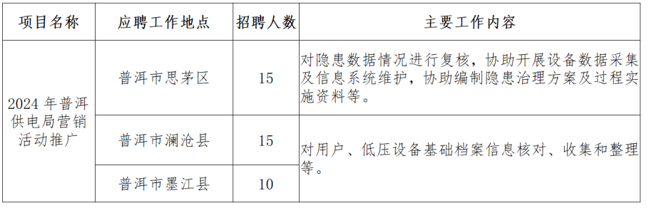 普洱供電局2024年項(xiàng)目制用工招聘公告