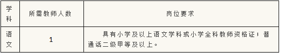 崗位要求:具有小學(xué)及以上語文學(xué)科或小學(xué)全科教師資格證,普通話二級(jí)甲等及以上。