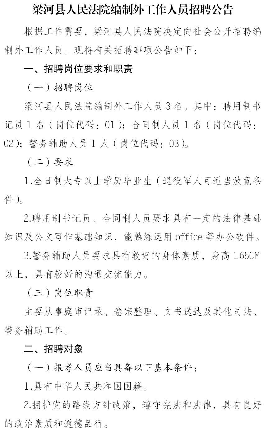 梁河縣人民法院編制外工作人員招聘公告