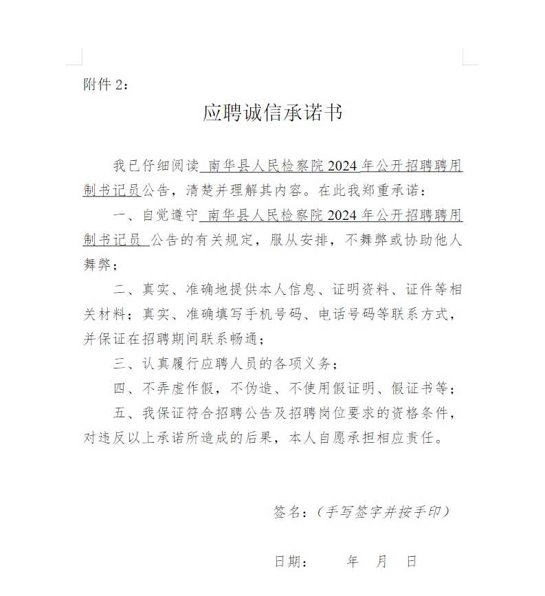 南華縣人民檢察院2024年公開招聘聘用制書記員公告