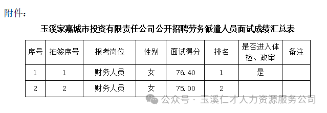 玉溪家嘉城市投資有限責(zé)任公司公開招聘勞務(wù)派遣工作人員面試成績公示