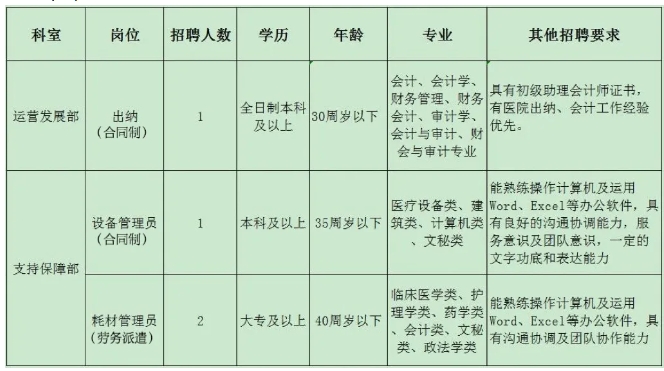 出納崗、設備管理崗薪資待遇按照彌勒市中醫(yī)醫(yī)院合同制人員待遇標準執(zhí)行,耗材管理崗按照彌勒市中醫(yī)醫(yī)院輔助性崗位管理人員待遇標準執(zhí)行。以上崗位均購買五險,享受工會福利待遇。
