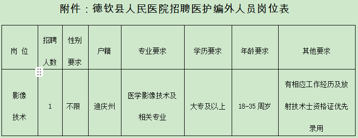 2024年德欽縣人民醫(yī)院招聘編外影像技術(shù)專業(yè)人員的公告