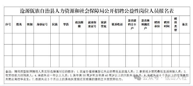 (二)報名地點:滄源佤族自治縣人力資源和社會保障局三樓辦公室。