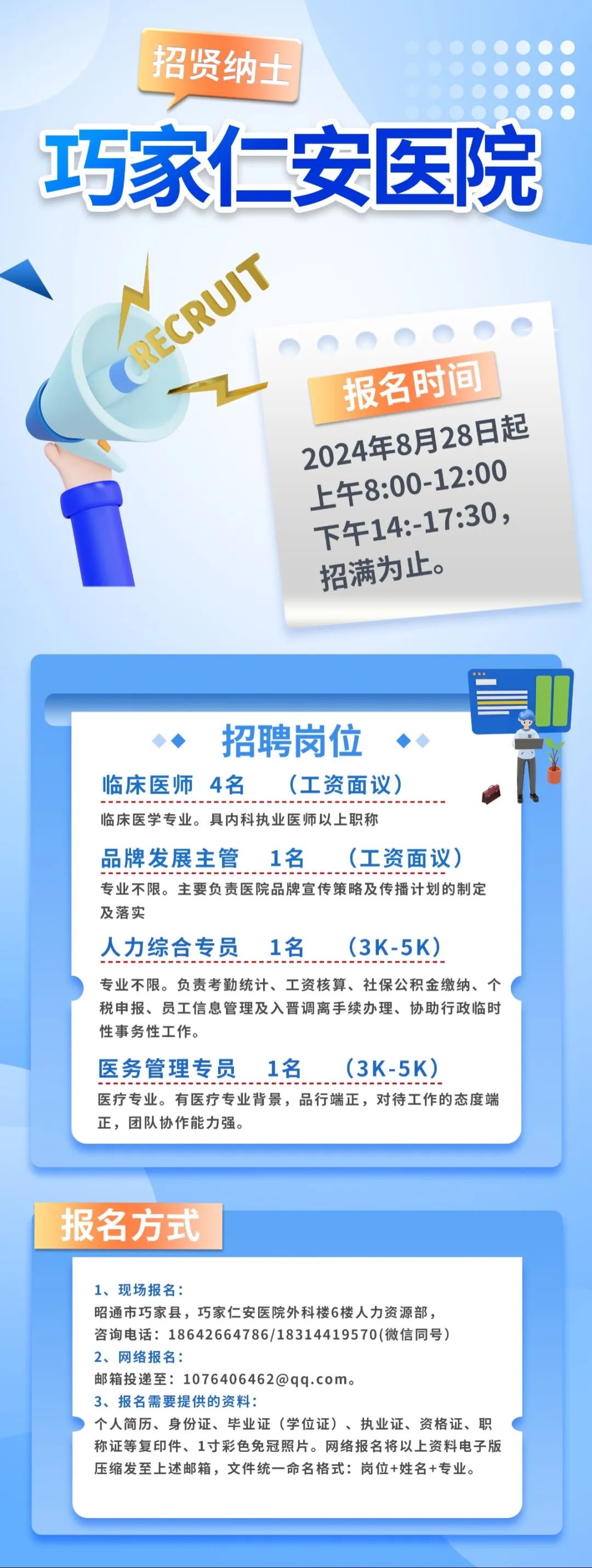 招聘啦!!巧家仁安醫(yī)院招賢納士,職等你來!