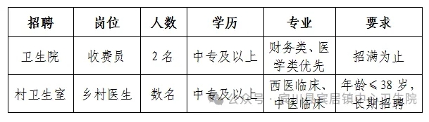 賓川縣賓居鎮(zhèn)中心衛(wèi)生院及衛(wèi)生室因工作需要,現面向社會公開招聘衛(wèi)生院編外人員2名、鄉(xiāng)村醫(yī)生數名,現將招聘有關事項公告如下: