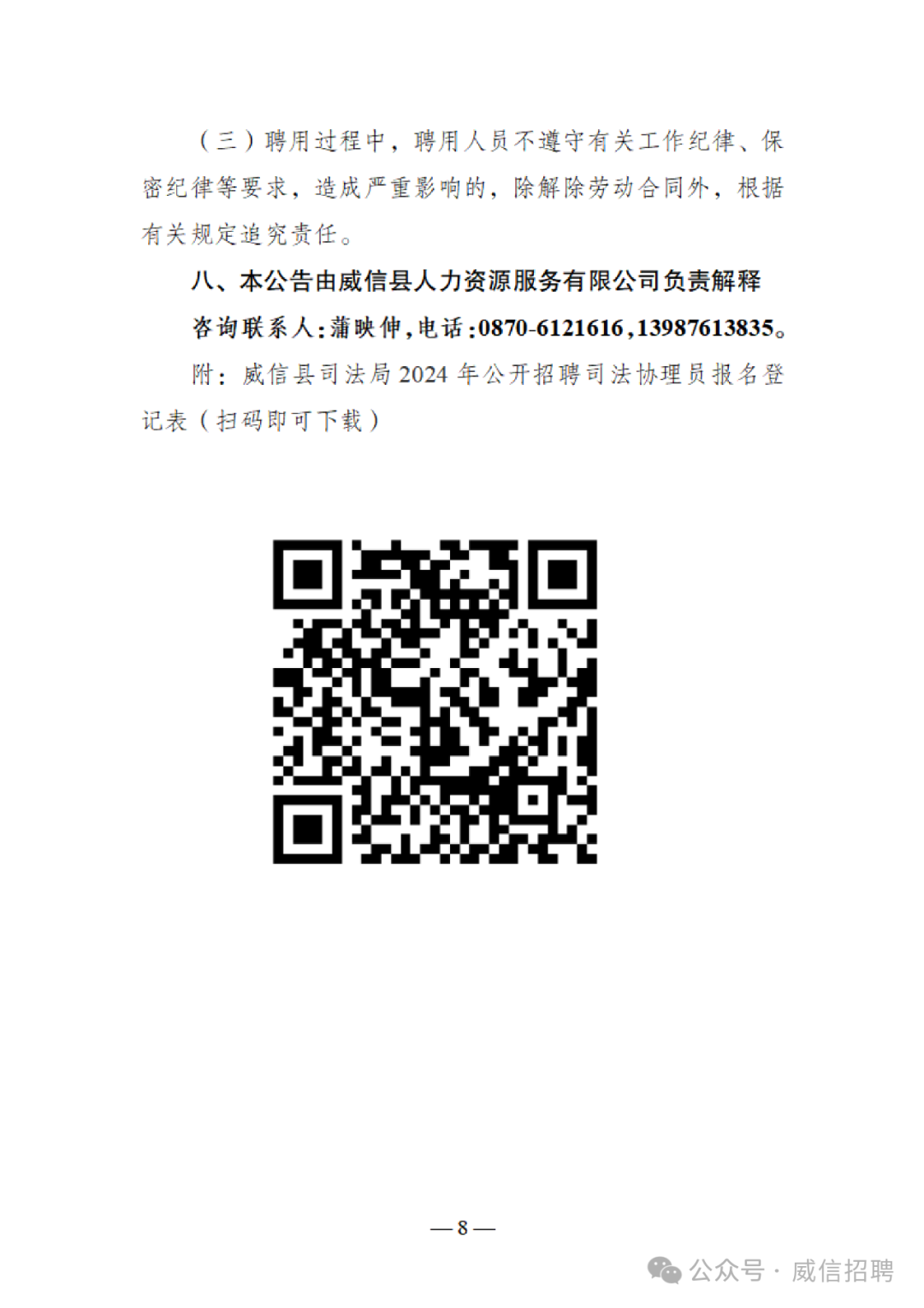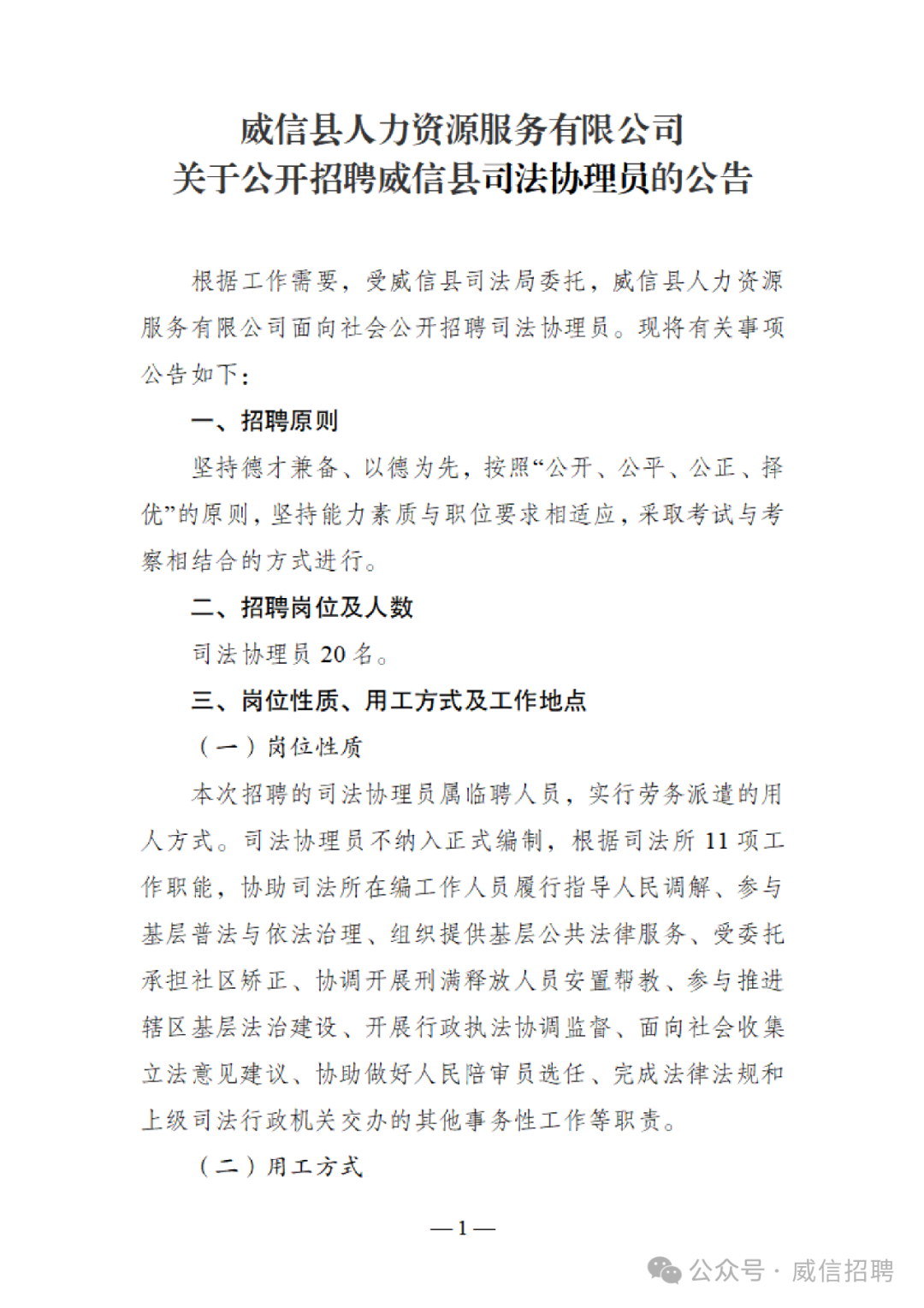 關于公開招聘威信縣司法協(xié)理員的公告