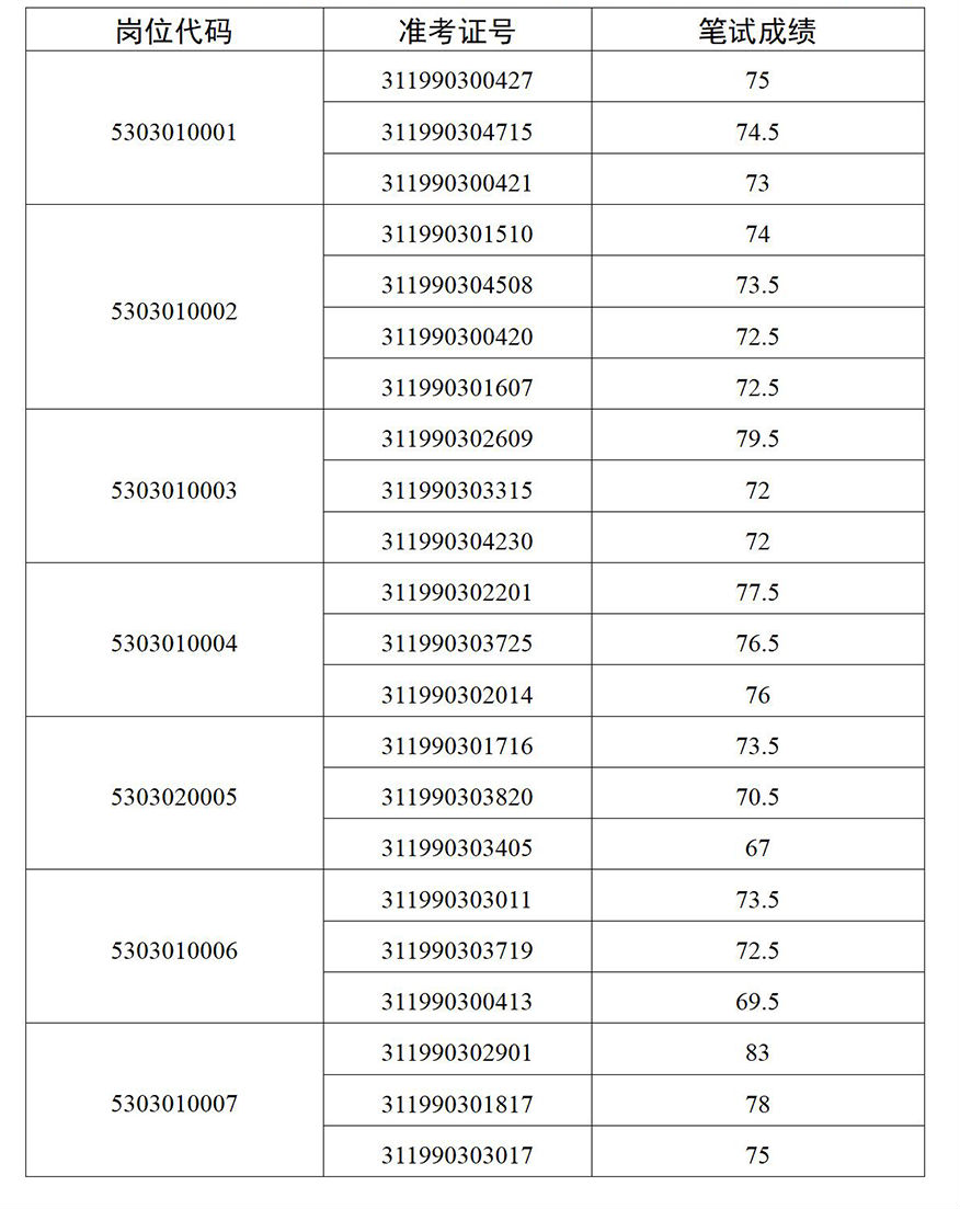 從報考中共云南省委社會工作部2024年公開遴選公務(wù)員考試錄用崗位,筆試成績達到云南省2024年公開遴選公務(wù)員考試筆試最低合格分數(shù)線以上的考生中,根據(jù)筆試成績從高到低順序,以3:1的比例確定資格復(fù)審人員,按3:1比例末位出現(xiàn)筆試成績相同的,一并進入資格復(fù)審,詳見《中共云南省委社會工作部2024年公開遴選公務(wù)員資格復(fù)審人員名單》。