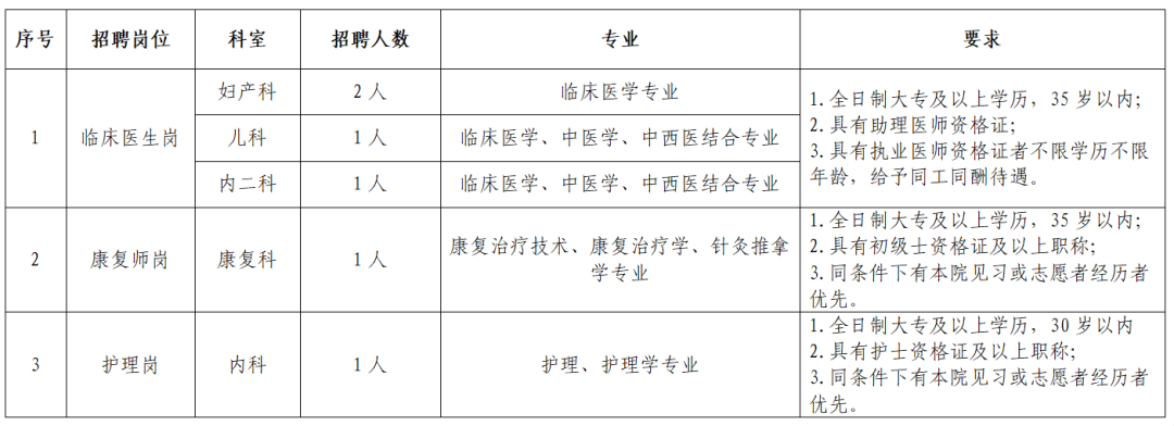 因我院醫(yī)療發(fā)展需要,擬面向社會公開招聘編外工作人員6人,現(xiàn)將有關(guān)招聘事宜公告如下: