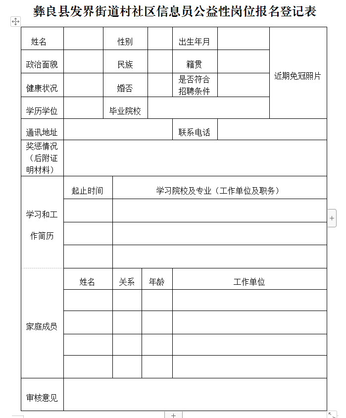 附件:彝良縣發(fā)界街道村社區(qū)信息員公益性崗位報名登記表.docx